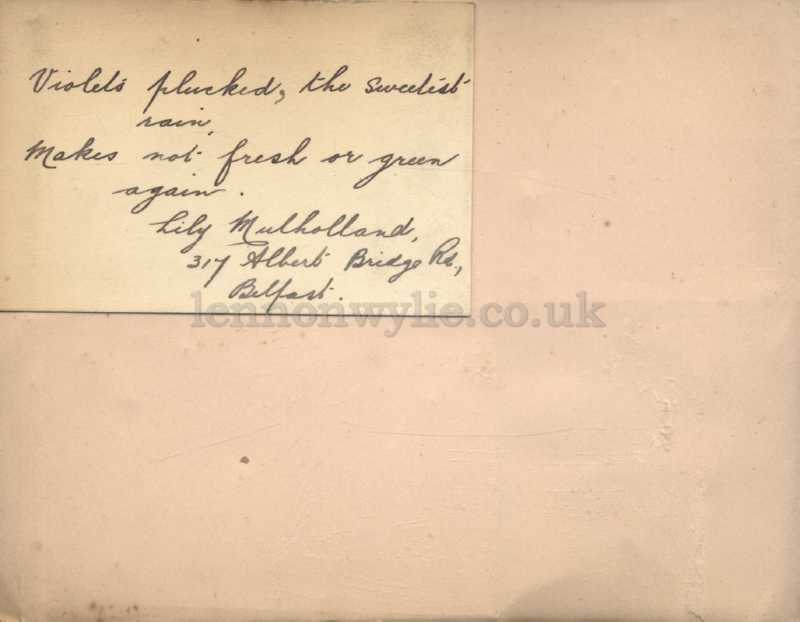 4) Lily Mulholland, 317 Albert Bridge Road, Belfast