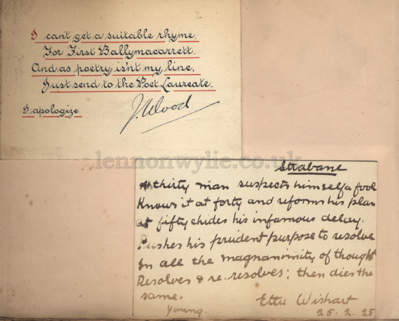 4) J. Wood ~ Etta Wishart, Strabane 25.2.25