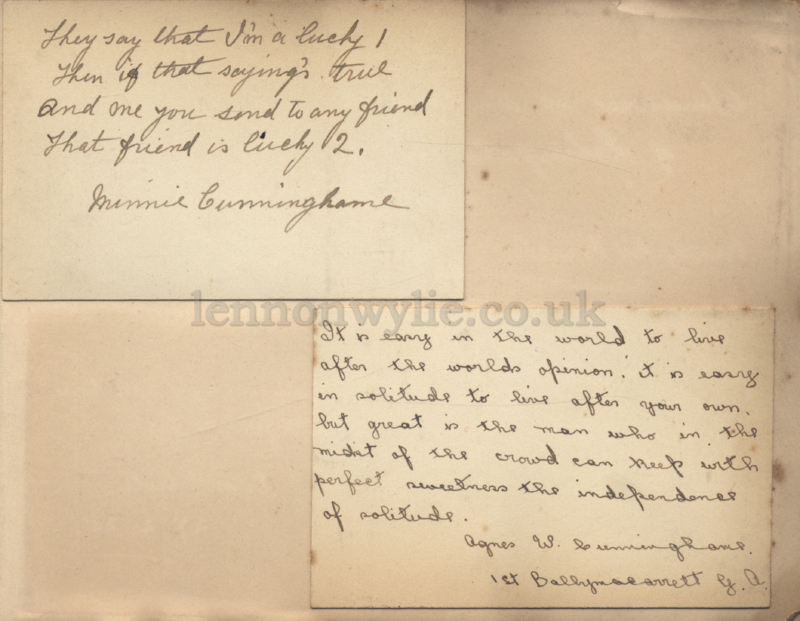 1) Minnie Cunninghame ~ Agnes W. Cunninghame, 1st Ballymacarrett G.A.