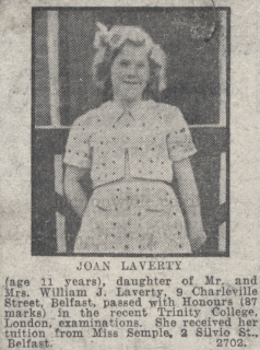 Laverty, 9 Charleville Street, Belfast, passed with Honours (87 marks) in