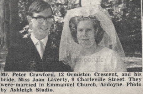 2) Mr. Peter Crawford, 12 Ormiston Crescent, and his bride, Miss Joan