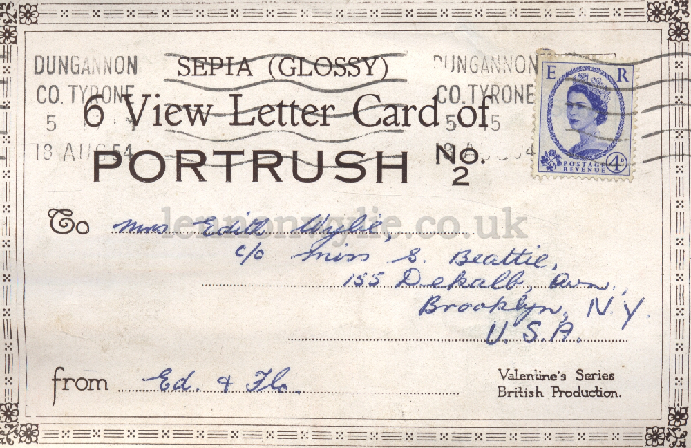 1) 18th August 1954 Postmark Dungannon, Co. Tyrone to Mrs. Edith Wylie, c/o
