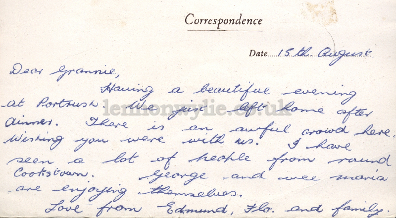 - 15th August. Dear Grannie, Having a beautiful evening at Portrush.
