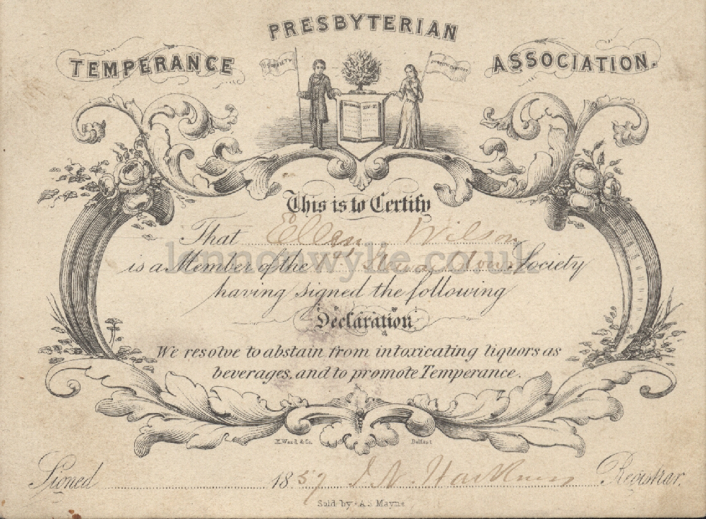 3) Presbyterian Temperance Association. This is to Certify that Ellen Wilson
