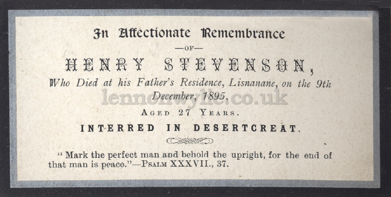 1) In Loving Memory. In Affectionate Remembrance of Henry Stevenson, who