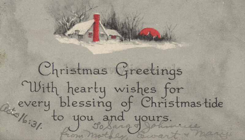 2) Christmas Greetings Acts 16:31 To Sara & Johnnie from Mother,