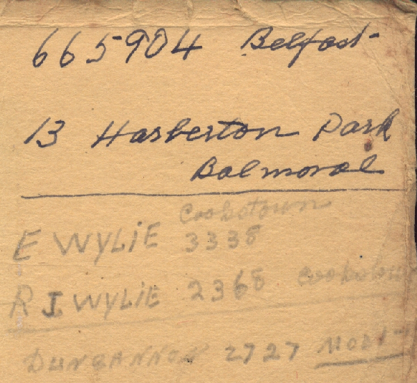 Belmont Booksnaps: Belfast 13 Harberton Park, Balmoral - E. Wylie, Cookstown