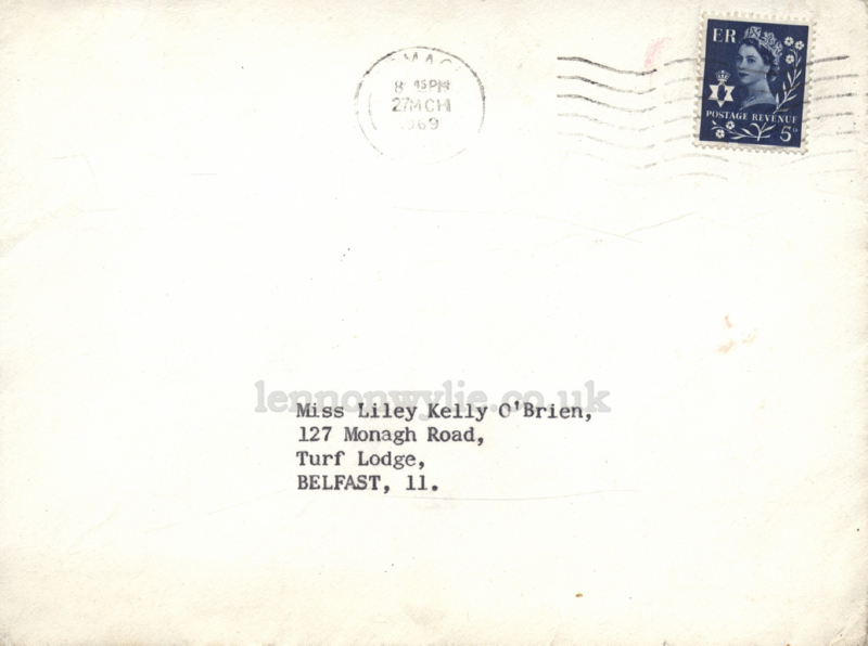 2) 18th December 1968 Postmark Belfast to Miss Lily Kelly O'Brien, 127