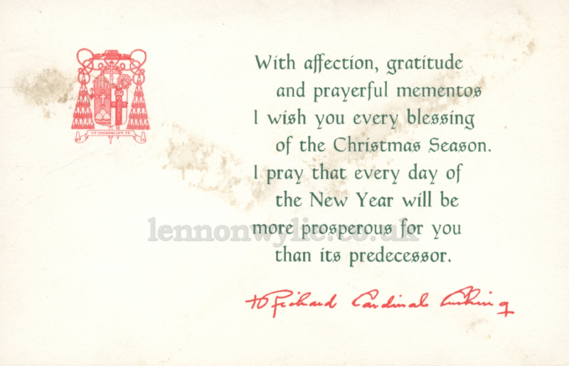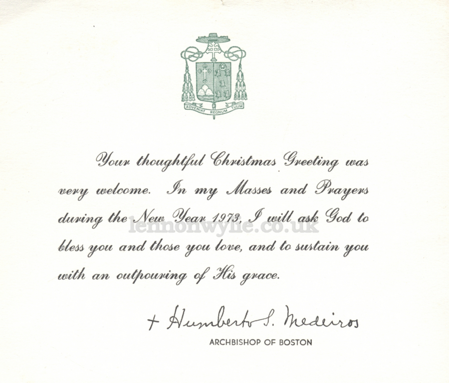 Cardinal Madeiros, Archbishop of Boston. Christmas Nineteen Hundred and