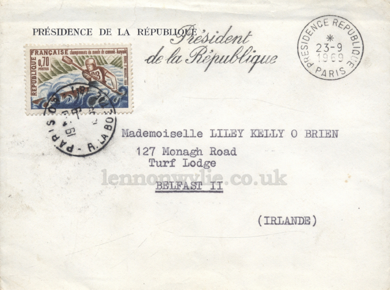 2) 28th January 1969 Postmark Presidence Republique Paris to Mademoiselle