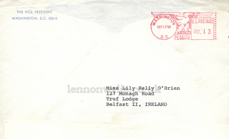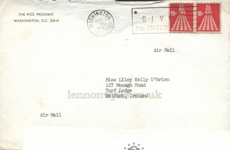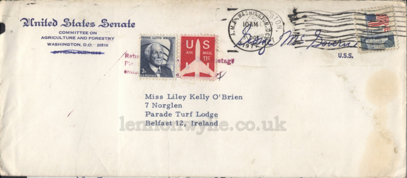 2) 10th October 1968 Postmark Washington to Miss Lily Kelly O'Brien, 127