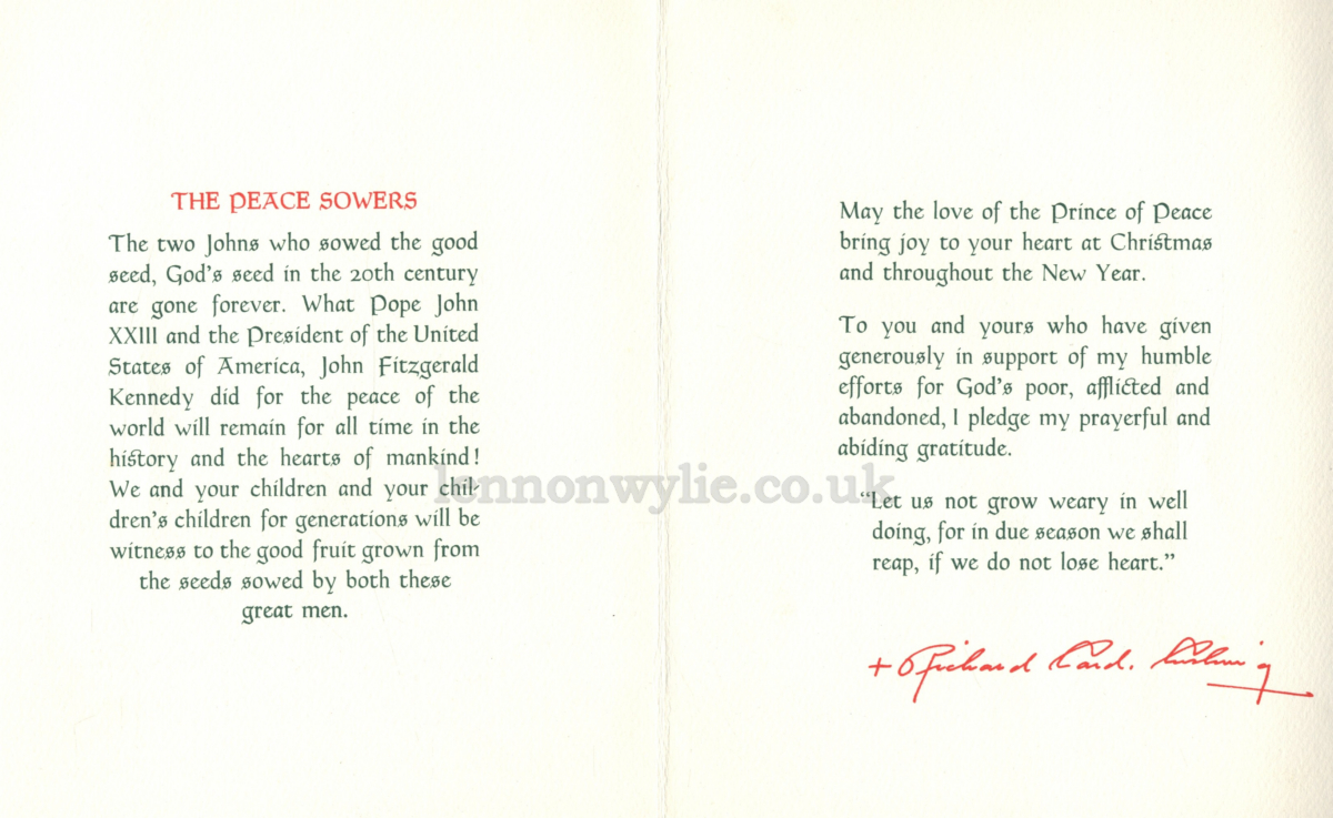 Friend, Richard Cardinal Cushing, Archbishop of Boston. - The Peace Sowers: