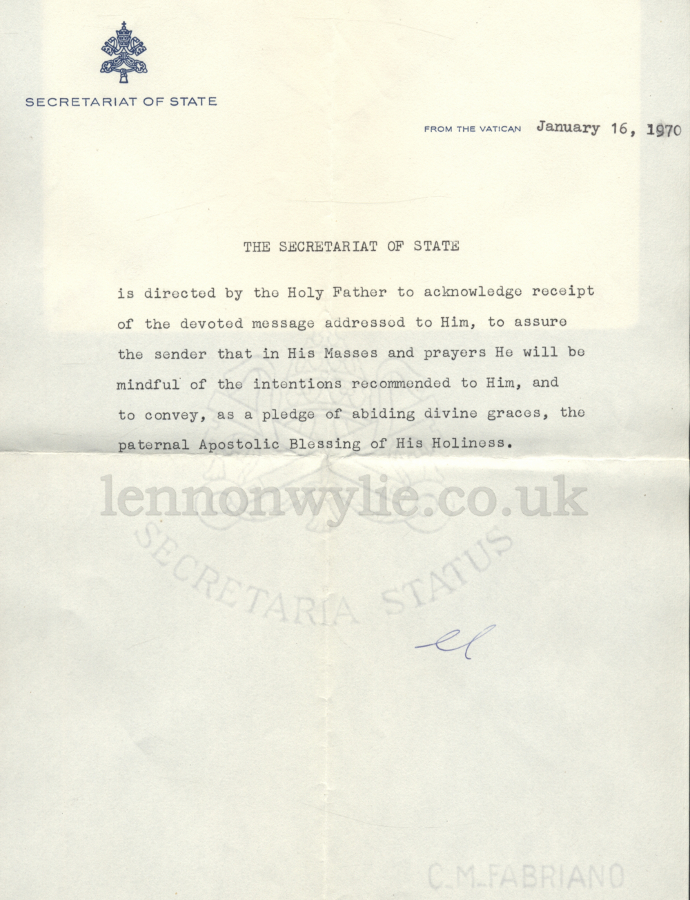 await the decision of His Holiness Pope Paul VI. Meanwhile, I beg a