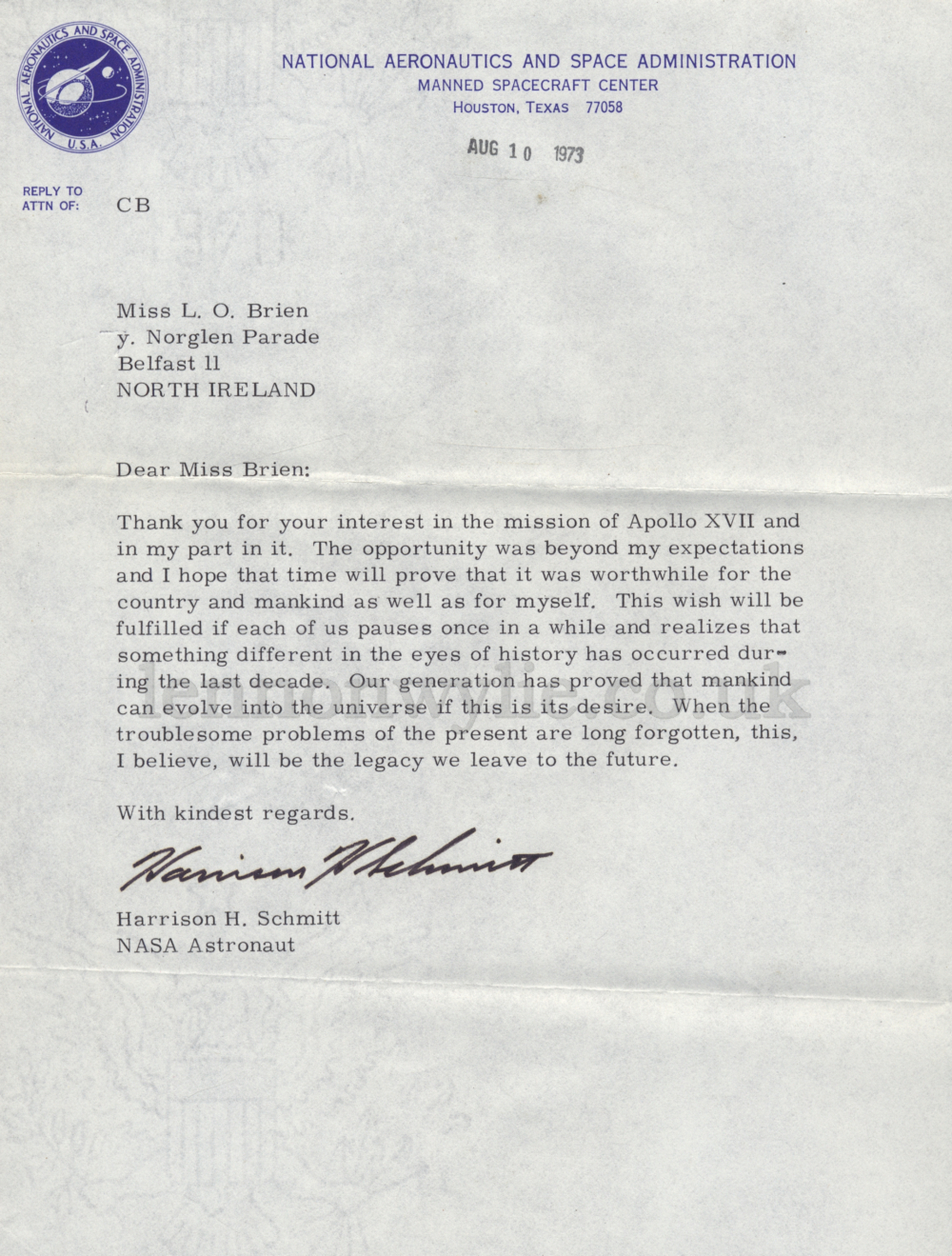 kindest regards. Harrison H. Schmitt NASA Astronaut
