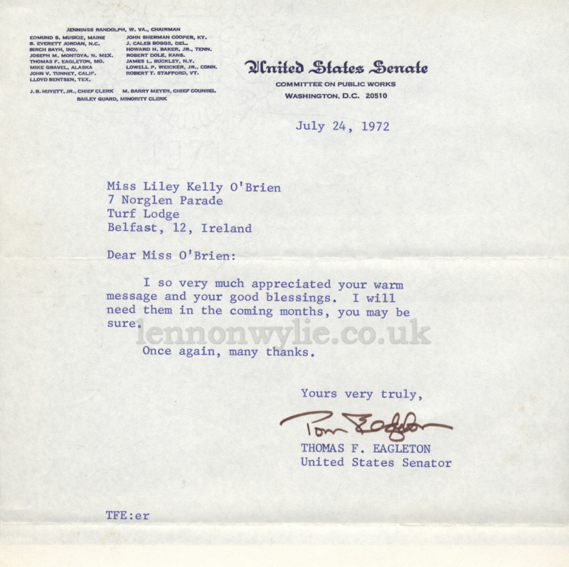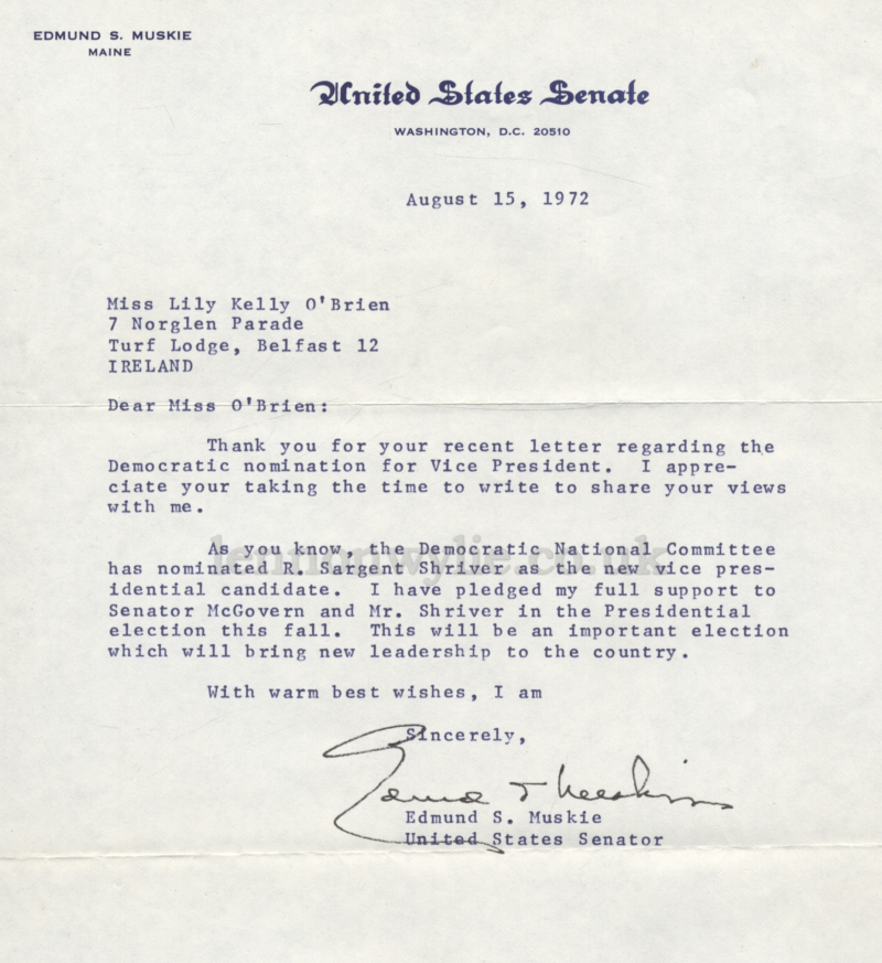 United States Senate Edward M. Kennedy to Miss Lily Kelly O'Brien, 7