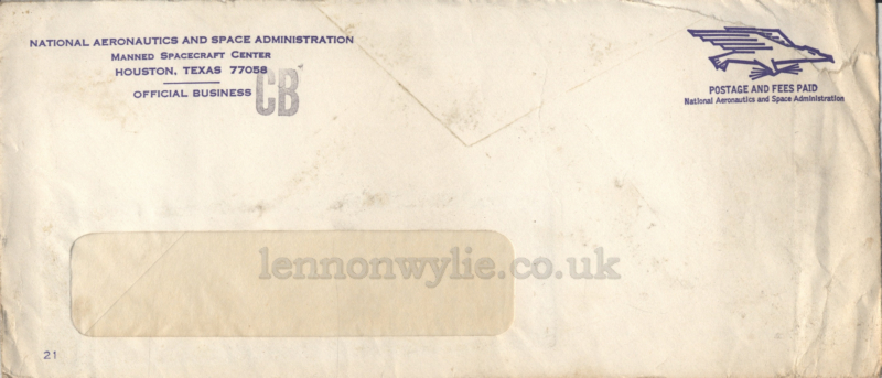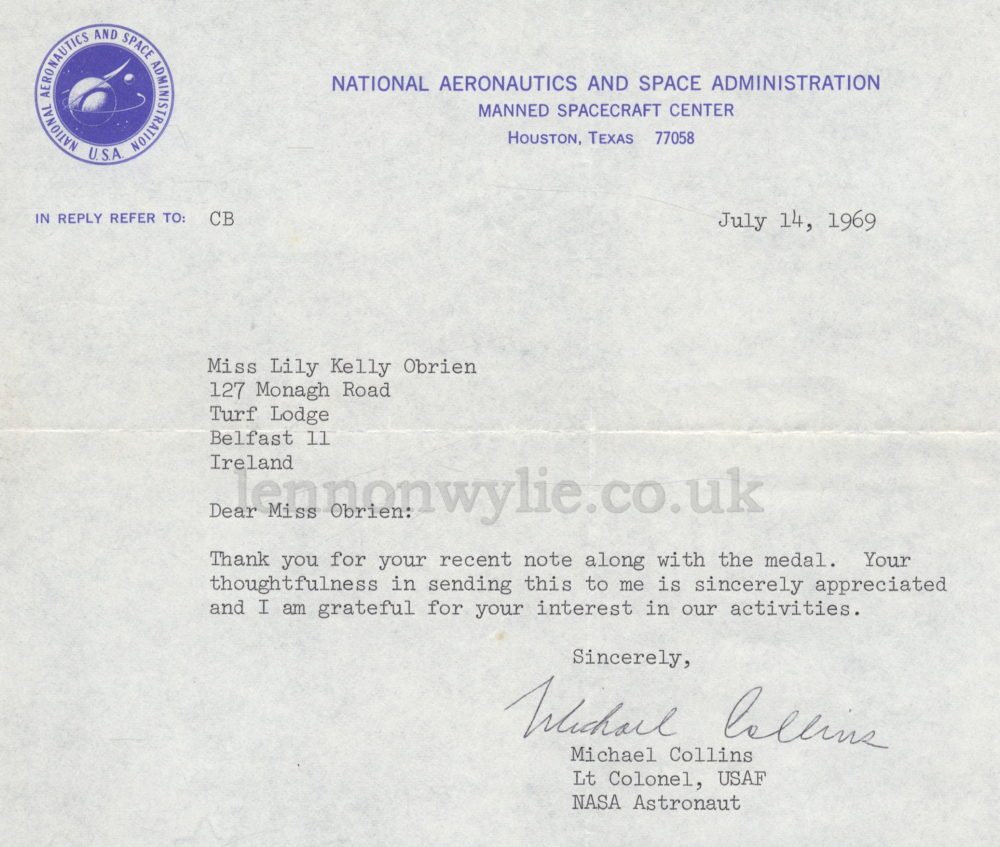 Lyndon B. Johnson Space Center, Houston, Texas - Dear Miss O'Brien: We are