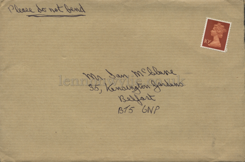 6) 8th May 1973? Postmark Belfast - Please do not bend - Mr. Ian McClune, 35