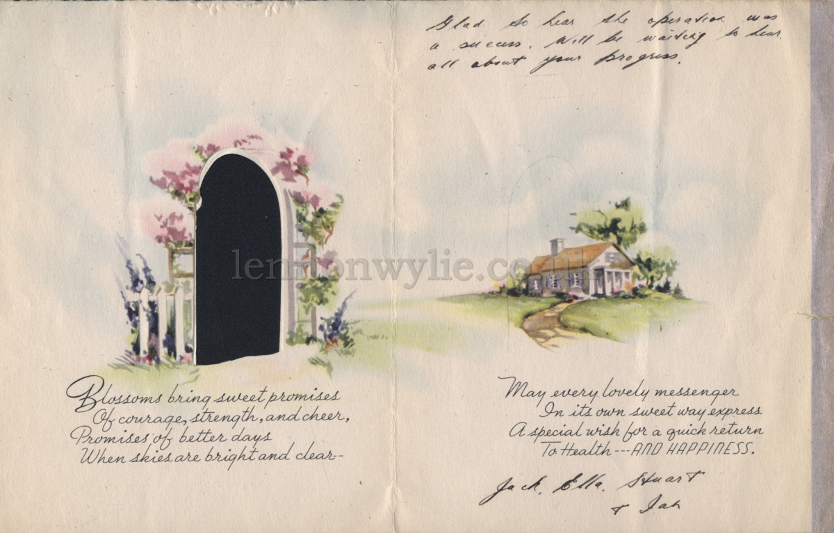so far. How is our Stephen? Hope to see you soon. Love D. & I. 'Nelson's