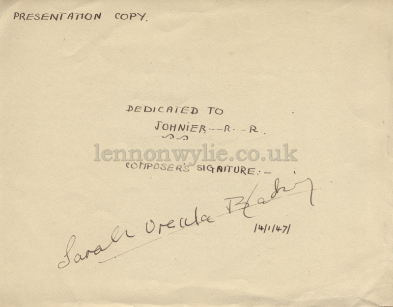 Composer's Signature:- Sarah Ursula Blacking 14/1/47