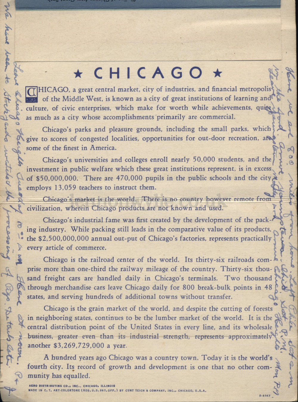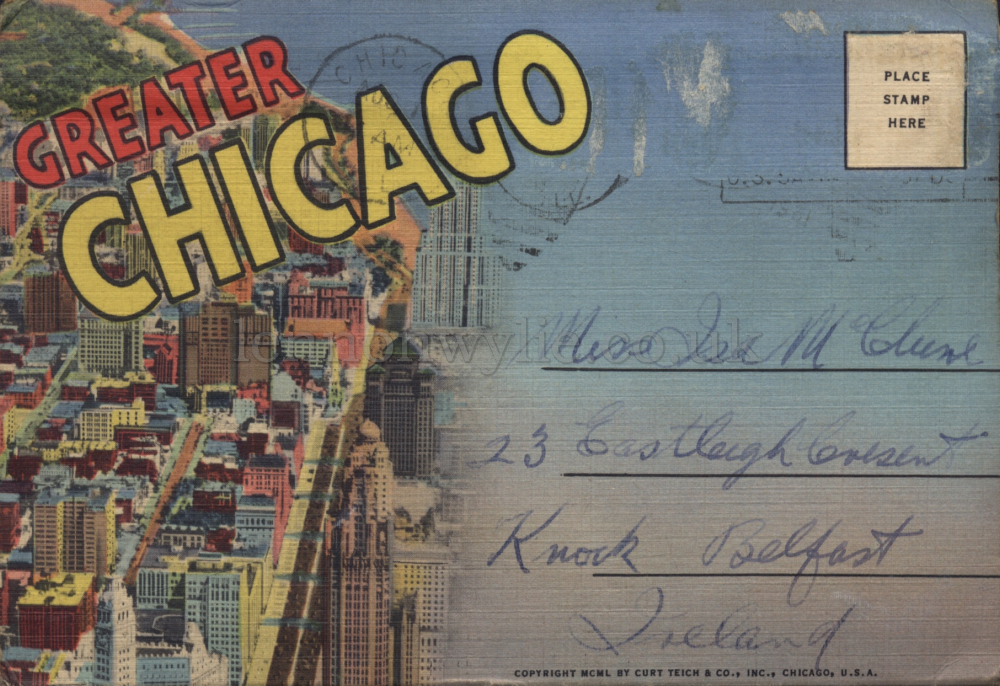 1) August Postmark Chicago to Miss Isa? McClune, 23 Eastleigh Crescent,