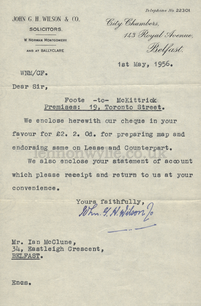 4) 1st May 1956 from John G. H. Wilson & Co., Solicitors, W. Norman