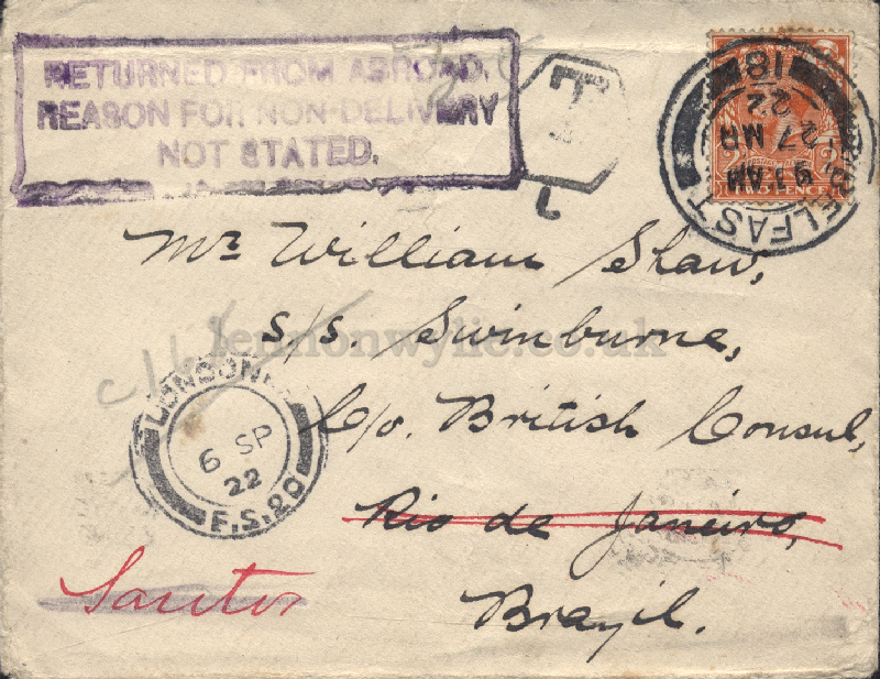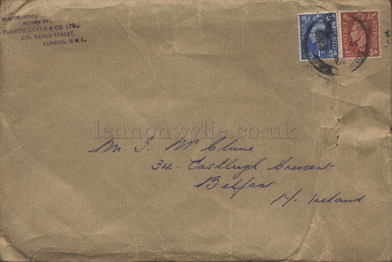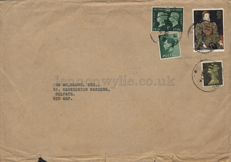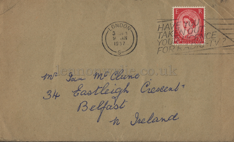 5) Postmark London to Mr. I. McClune, 34 Eastleigh Crescent, Belfast, N.,