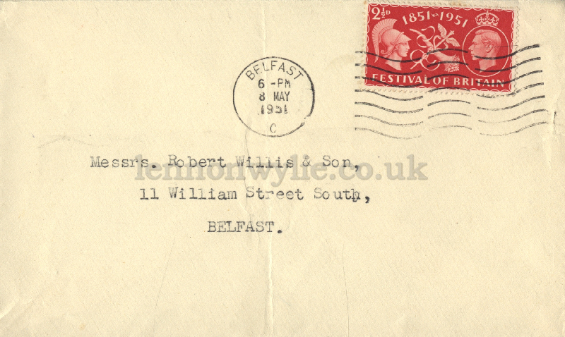 4) 8th May 1951 Postmark Belfast to Messrs. Robert Willis & Son, 11 William