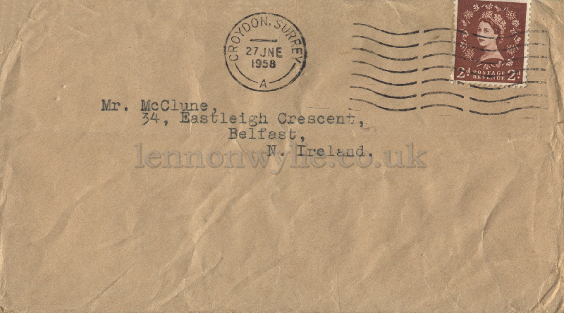 3) 27th June 1958 Postmark Croydon, Surrey to Mr. McClune, 34 Eastleigh