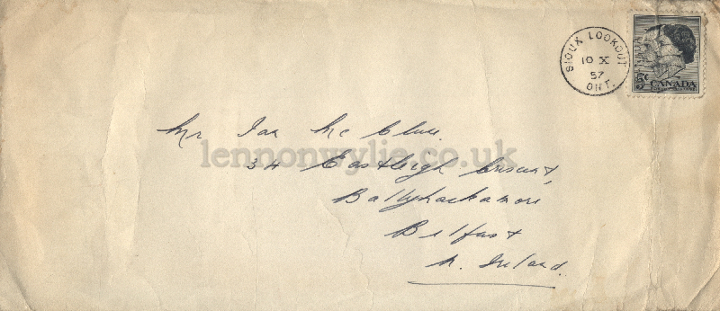5) 10th October 1957 Postmark Sioux Lookout, Ont. to Mr. Ian McClune, 34