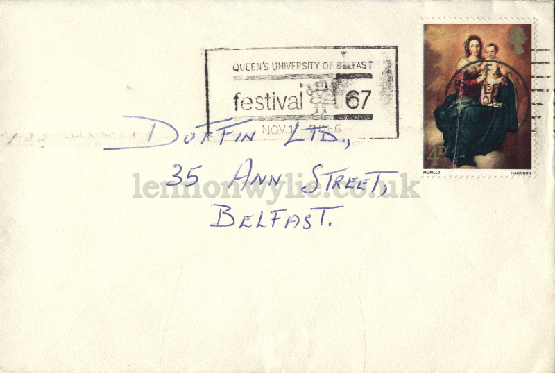 5) 21st November 1967 Postmark Belfast - Queen's University of Belfast