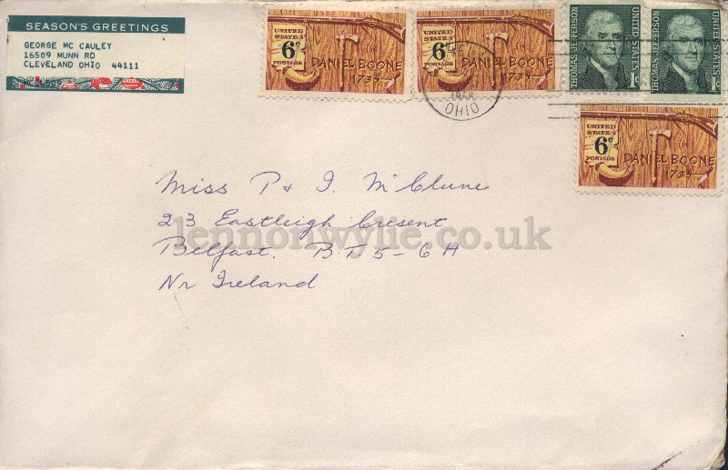 Jefferson to Miss P. & I. McClune, 23 Eastleigh Crescent, Belfast, Nr.