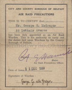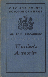 1) City and County Borough of Belfast Air raid Precautions, Warden's