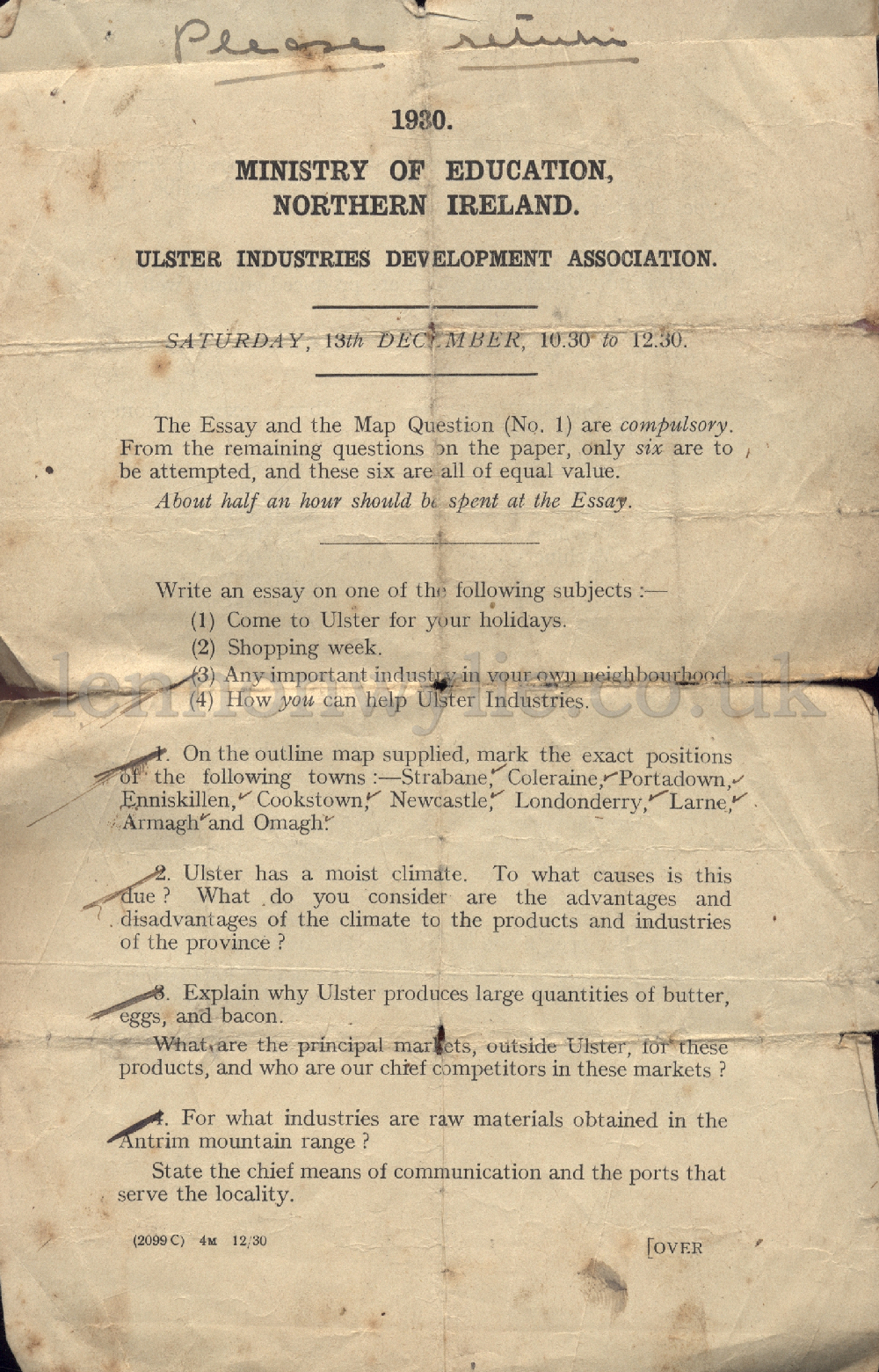 5) 1930 Ministry of Education Northern Ireland. Ulster Industries