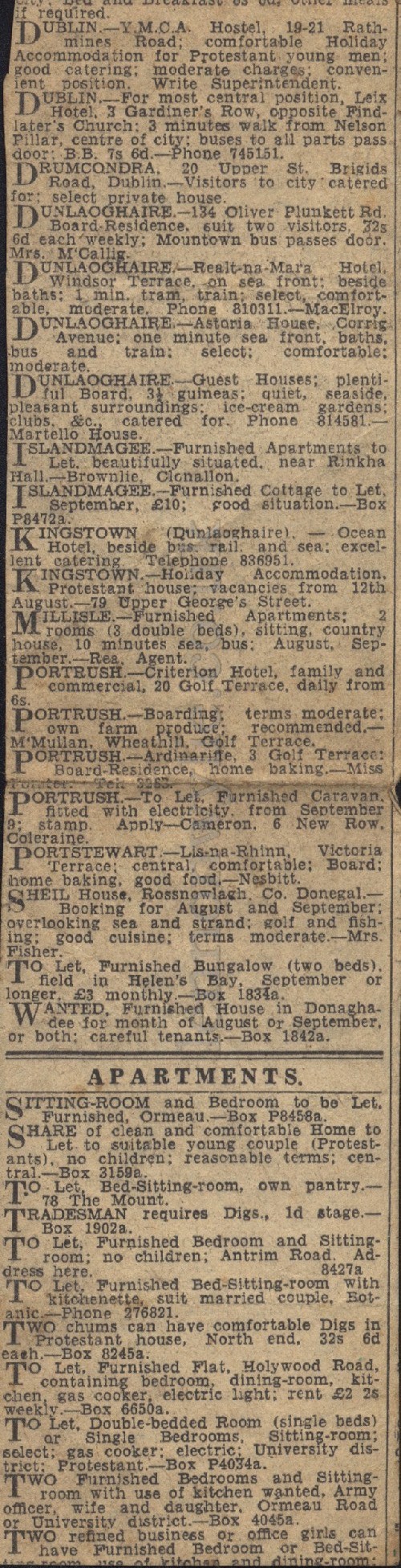 McGregor, all 25 Lothair Avenue, Belfast 1953/54 used at Smyth & McClure,