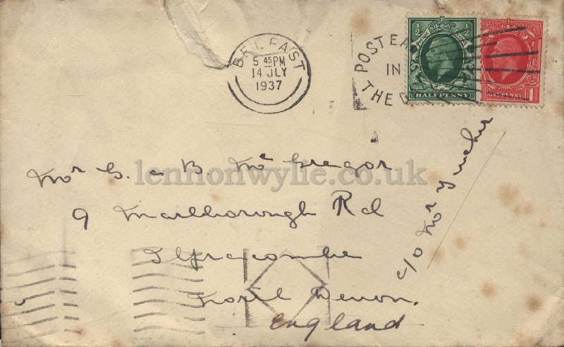 1) 14the July 1937 Postmark Belfast to Mr. G. & B. McGregor, 9
