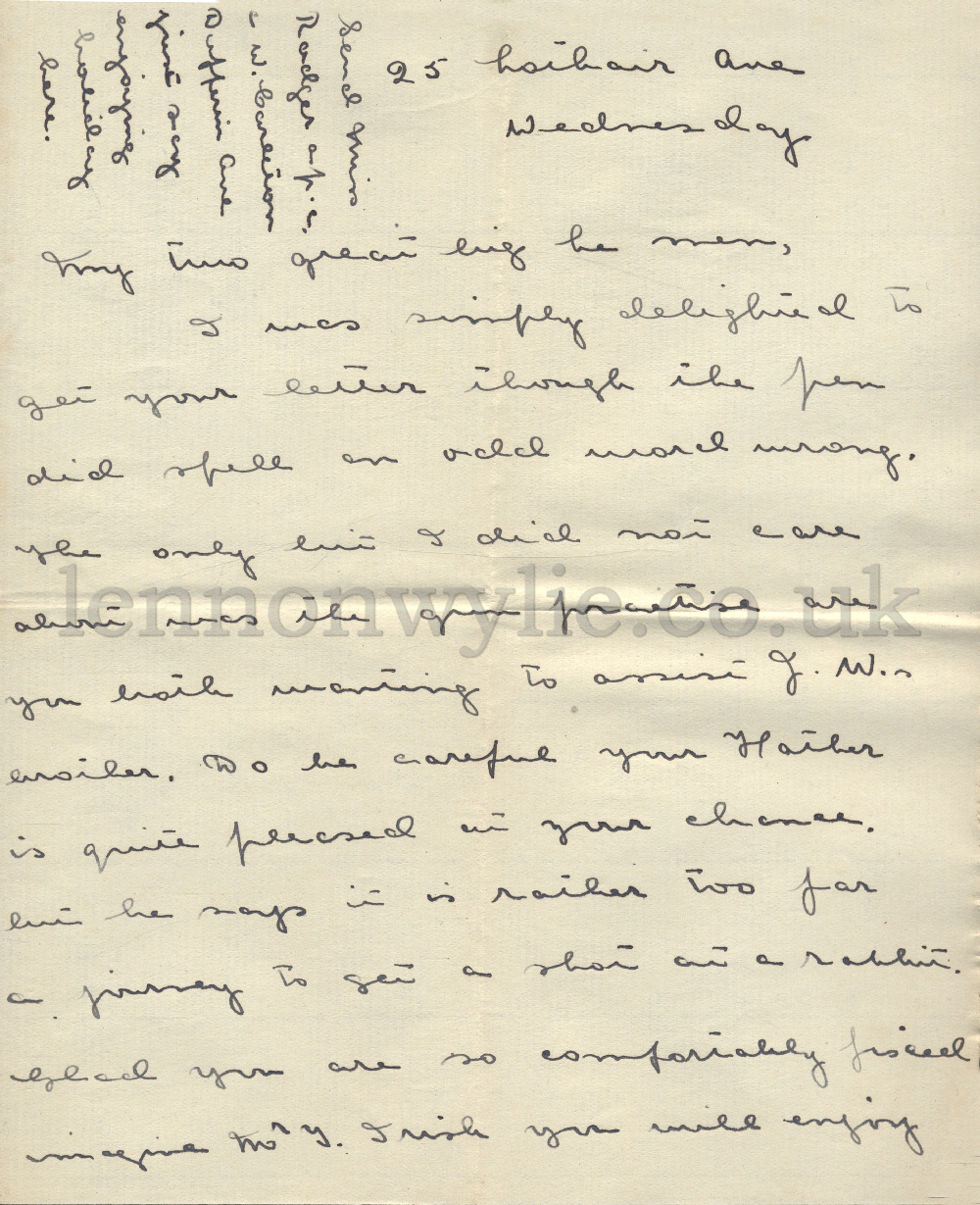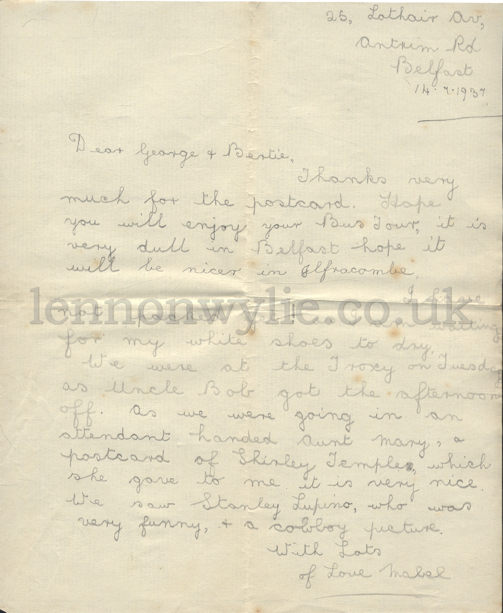 2) 25 Lothair Avenue, Antrim Road, Belfast 14.7.1937 Dear