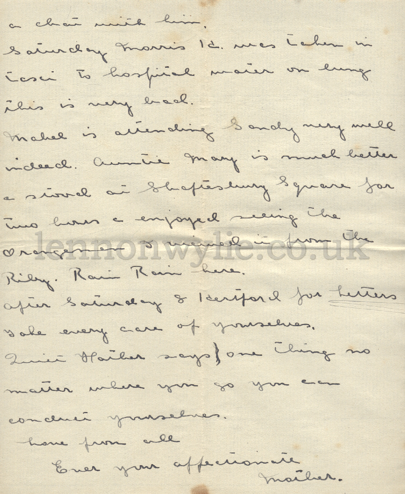 here. After Saturday & I ? for letters. Take every care of yourselves. ? ?