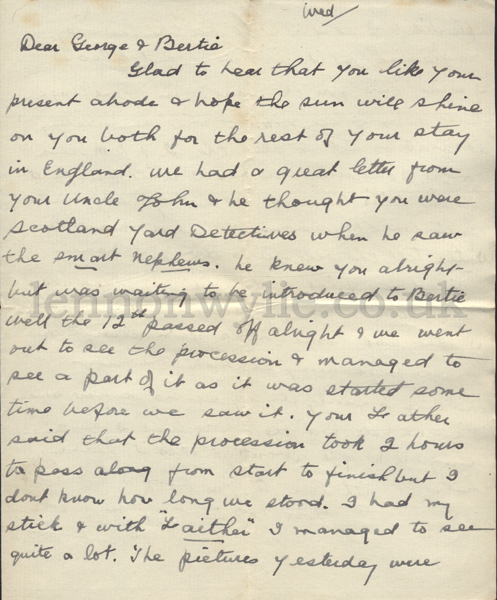 Wed. Dear George & Bertie, Glad to hear that you like your present