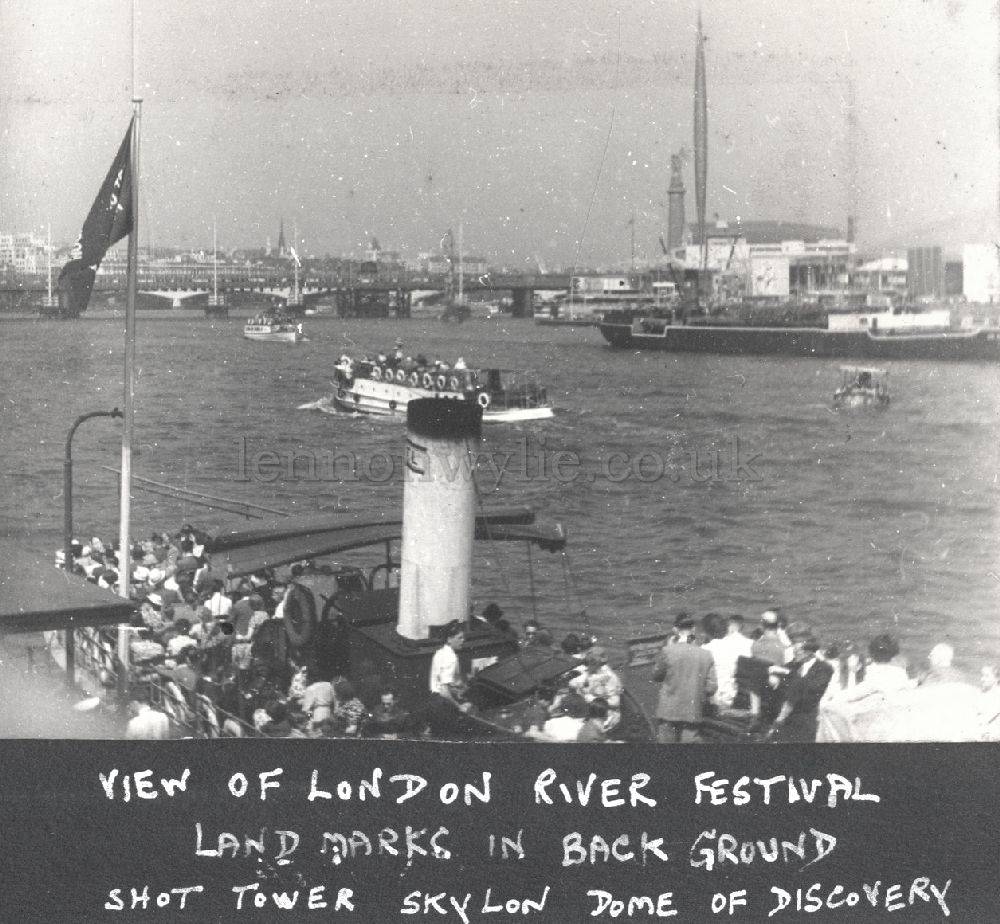 6) View of London River Festival, Land Mark in background. Shot Tower Skylon