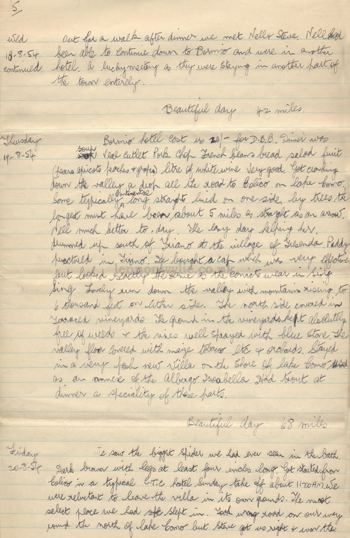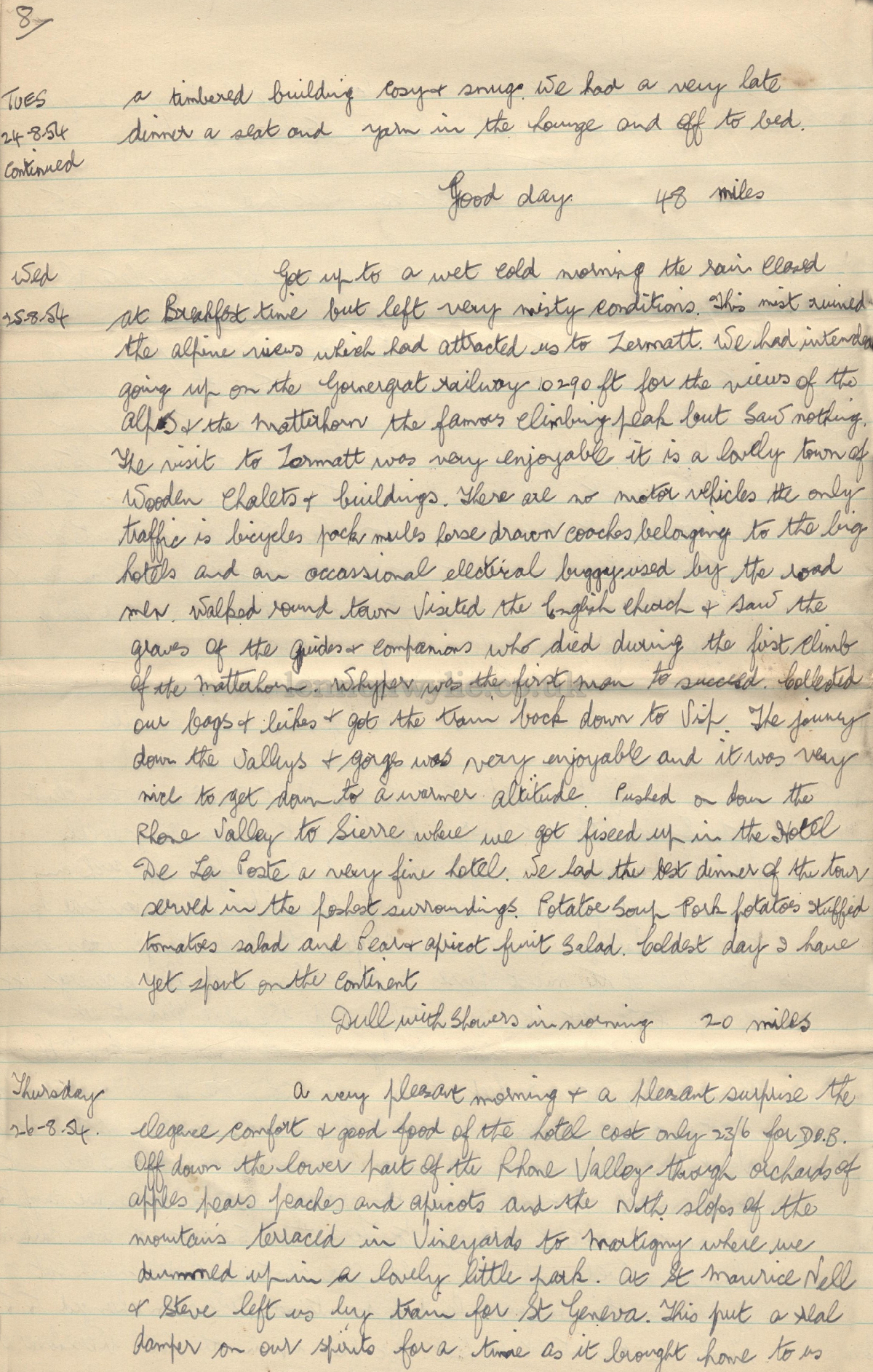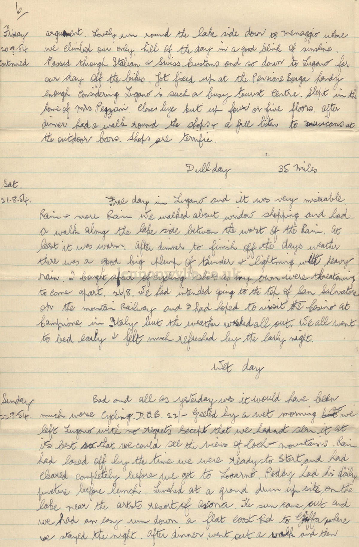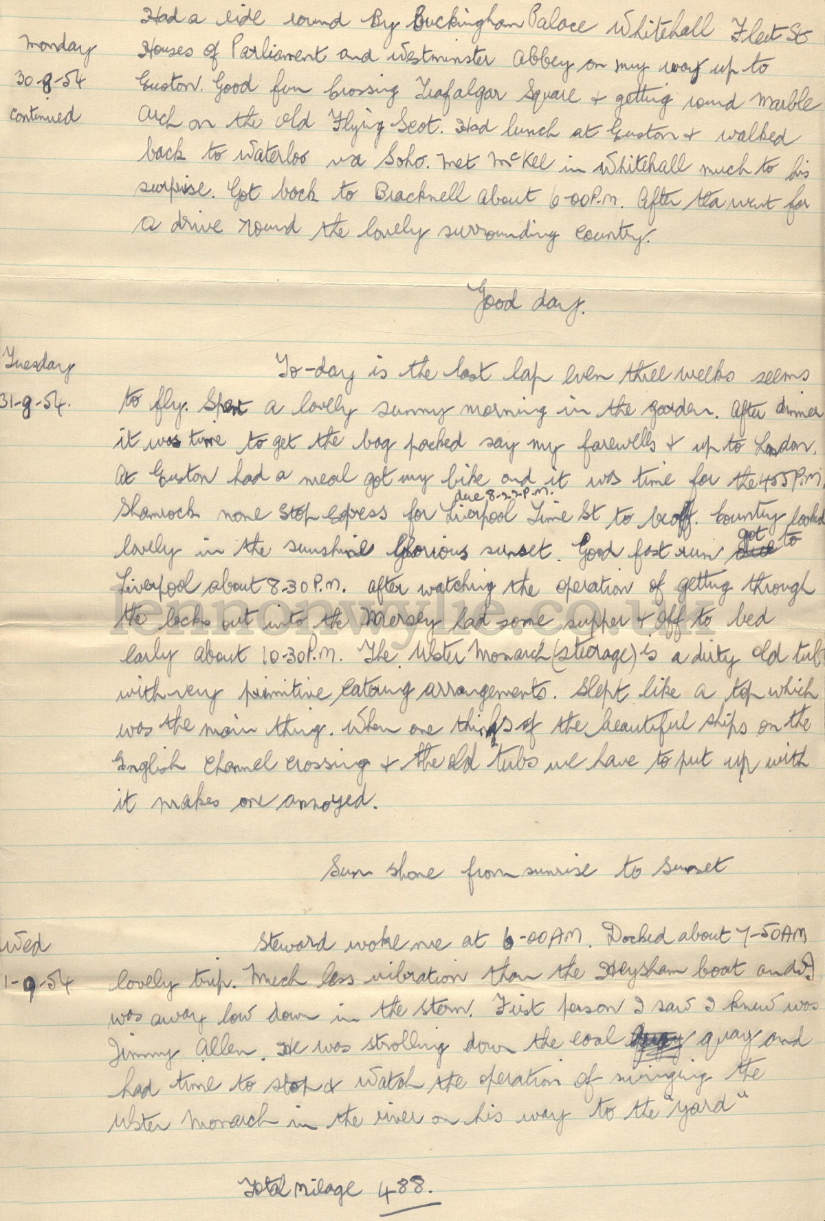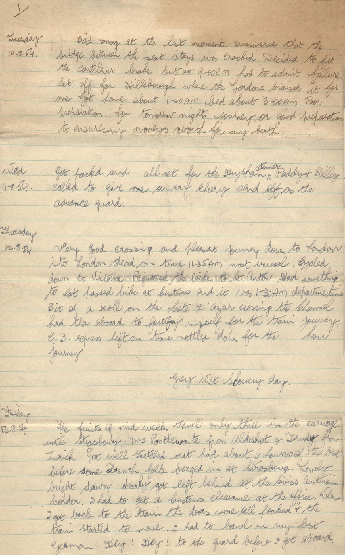 Trip Diary 10-8-54 to 1-9-54
