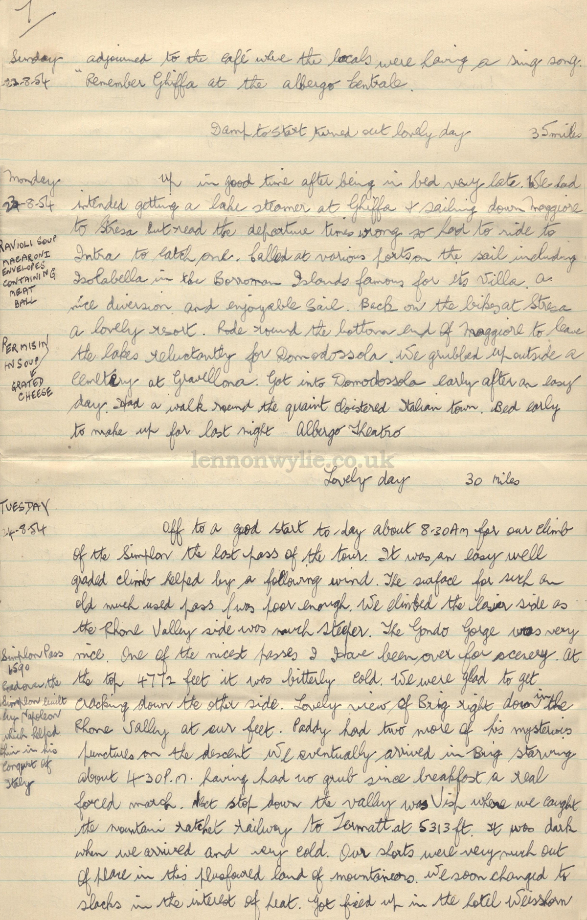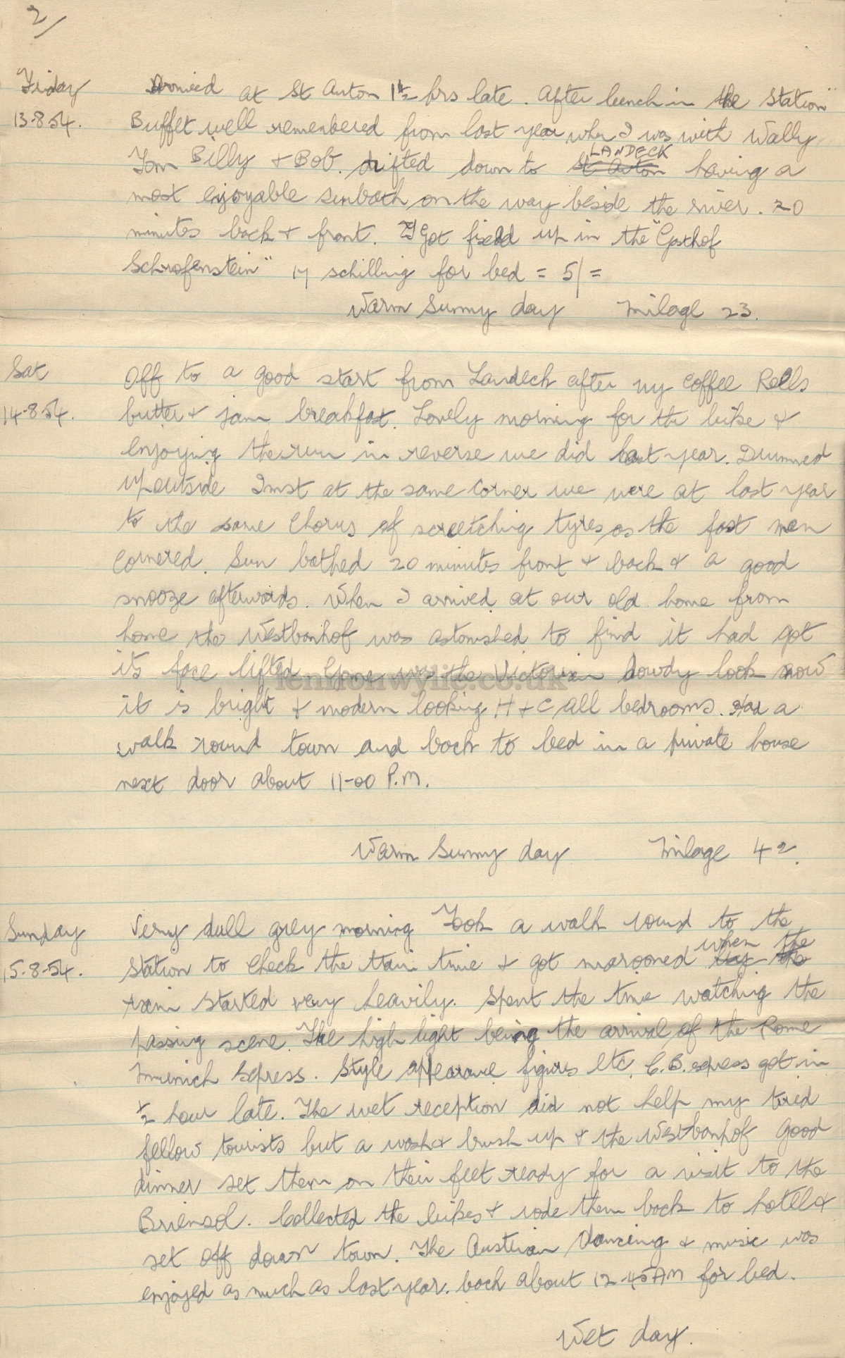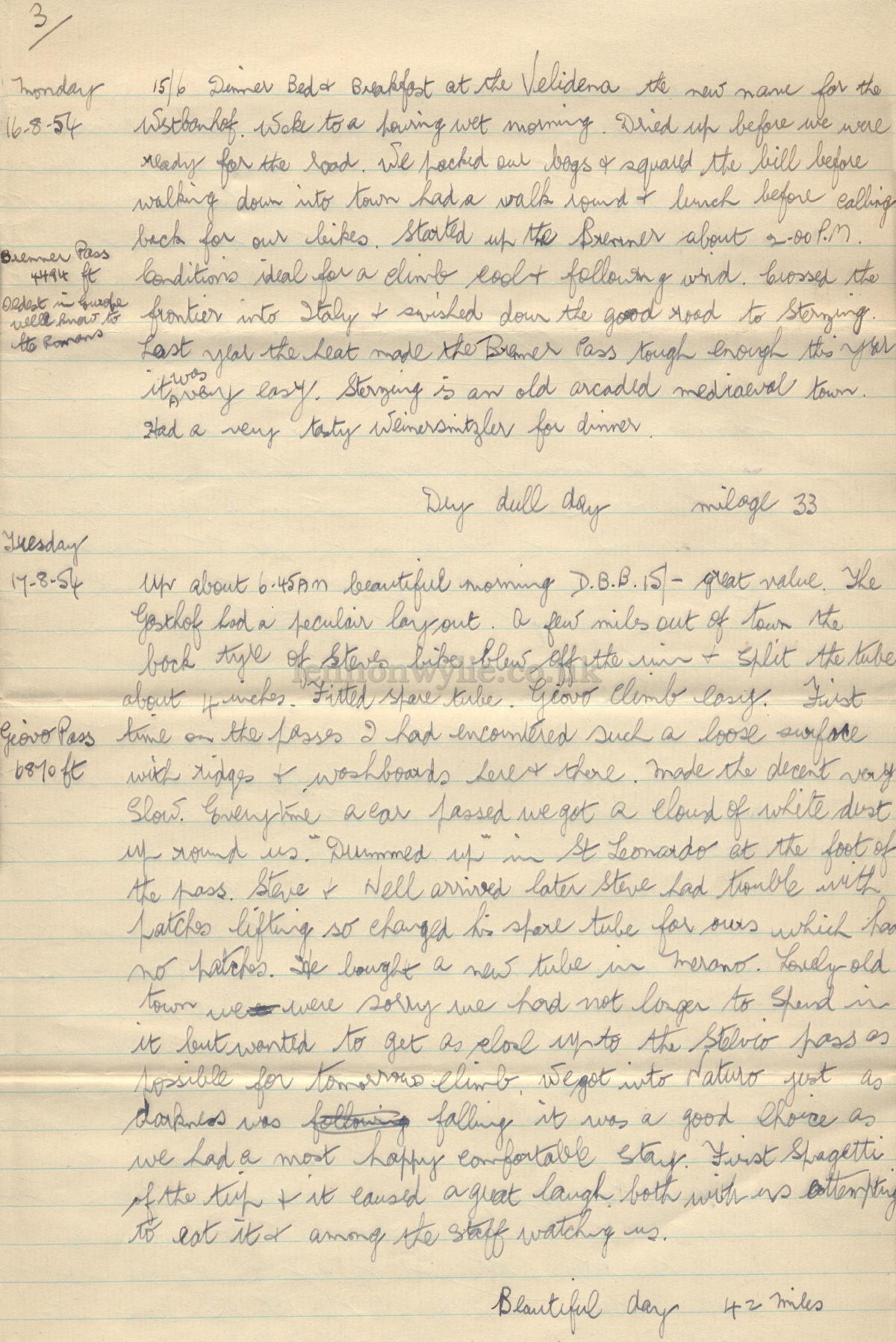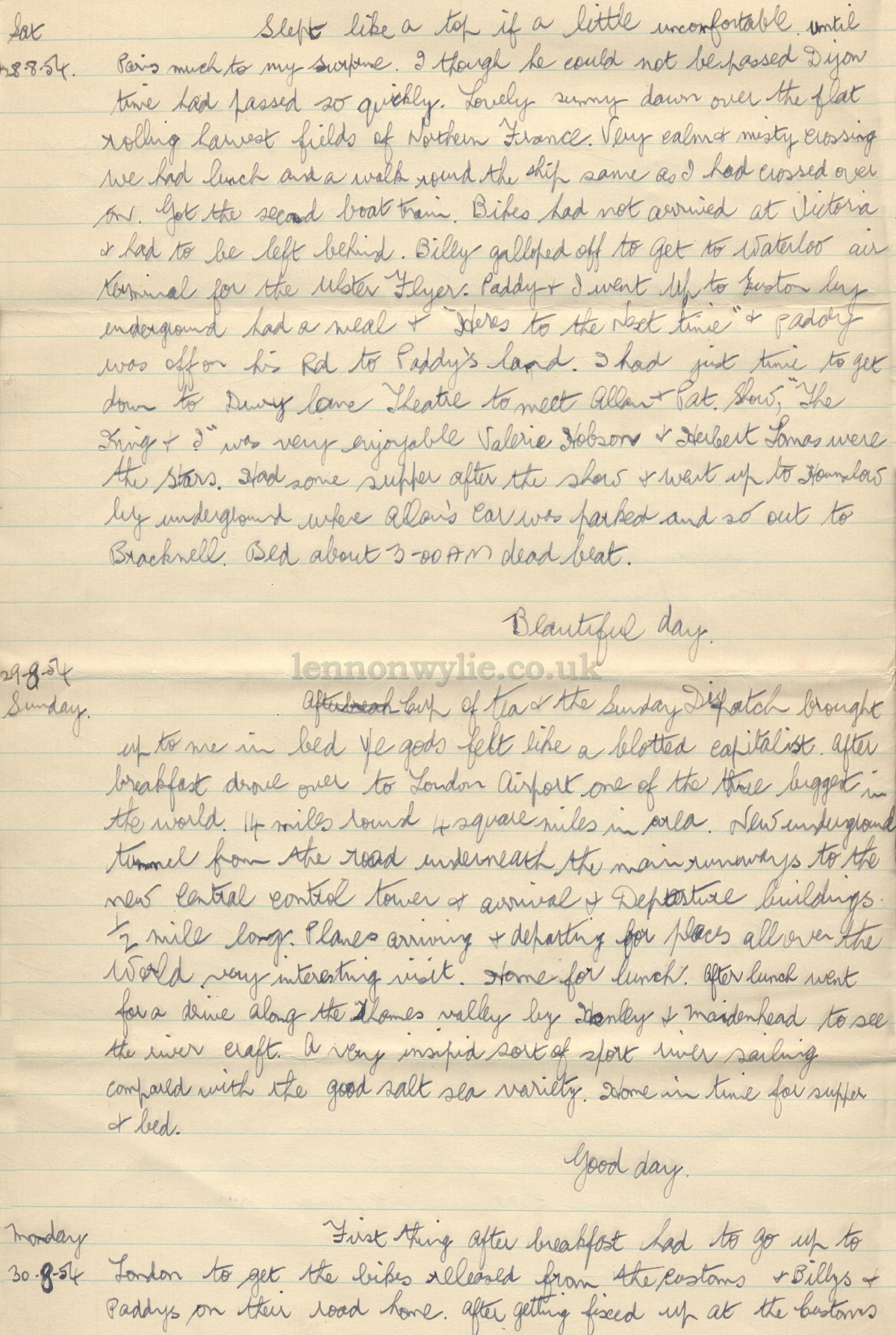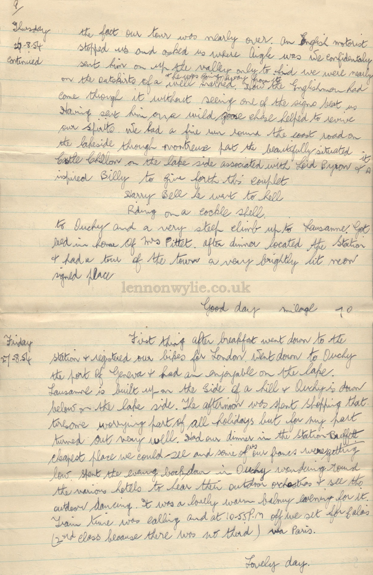 Trip Diary 10-8-54 to 1-9-54