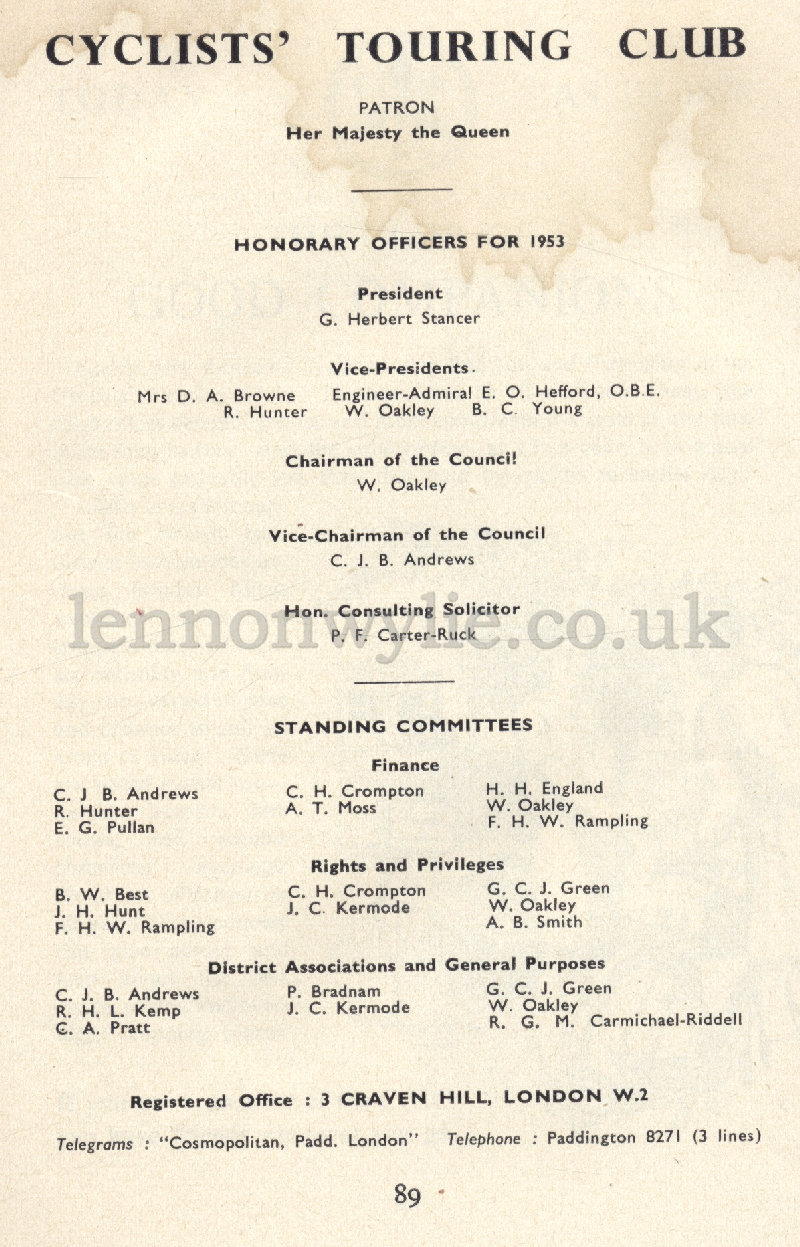 told by George a'Green - Cyclists' Touring Club, 3 Craven Hill, London 1953