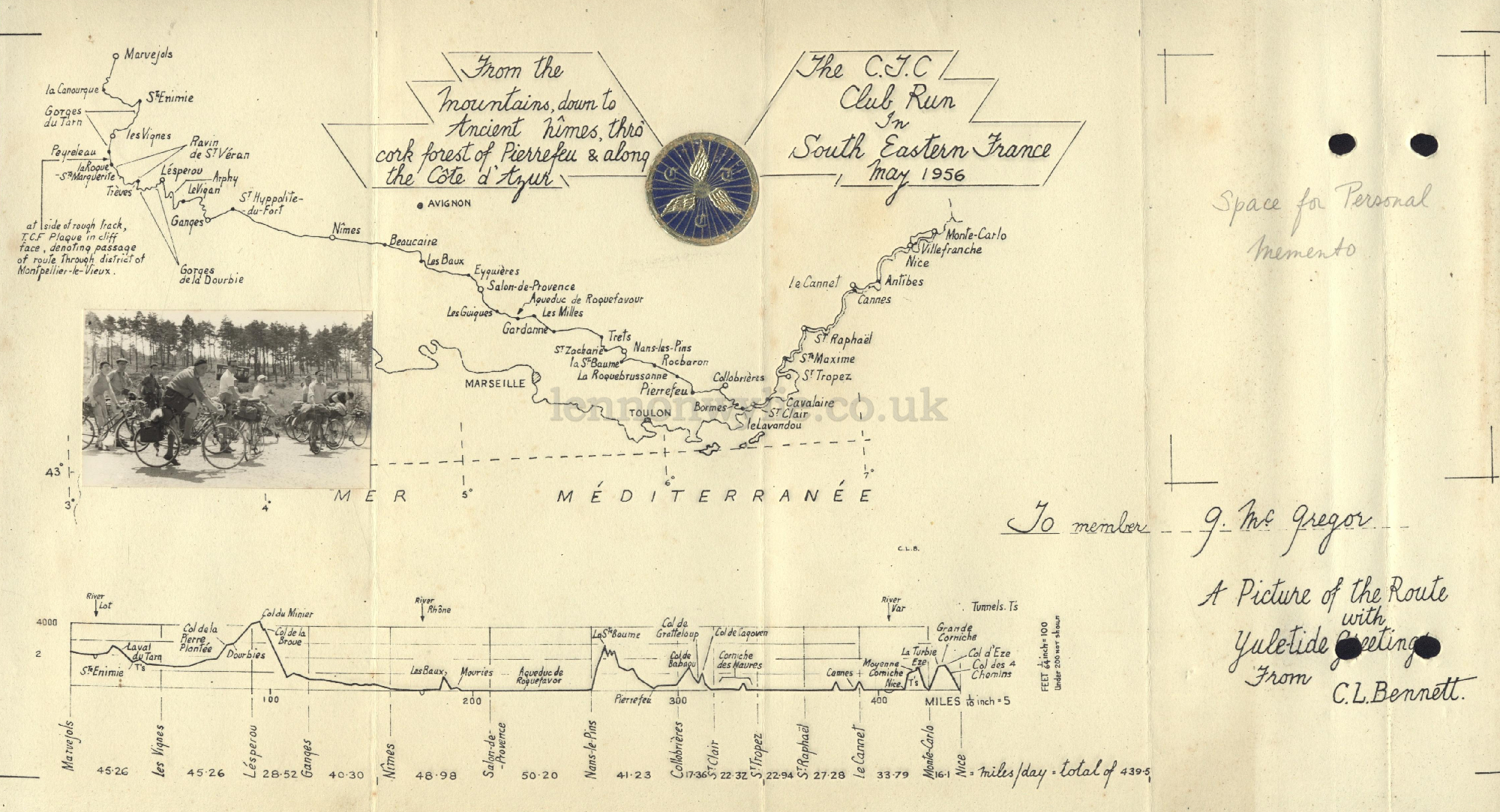 The C.T.C. Club Run in South Eastern France May 1956 Route Map - G.