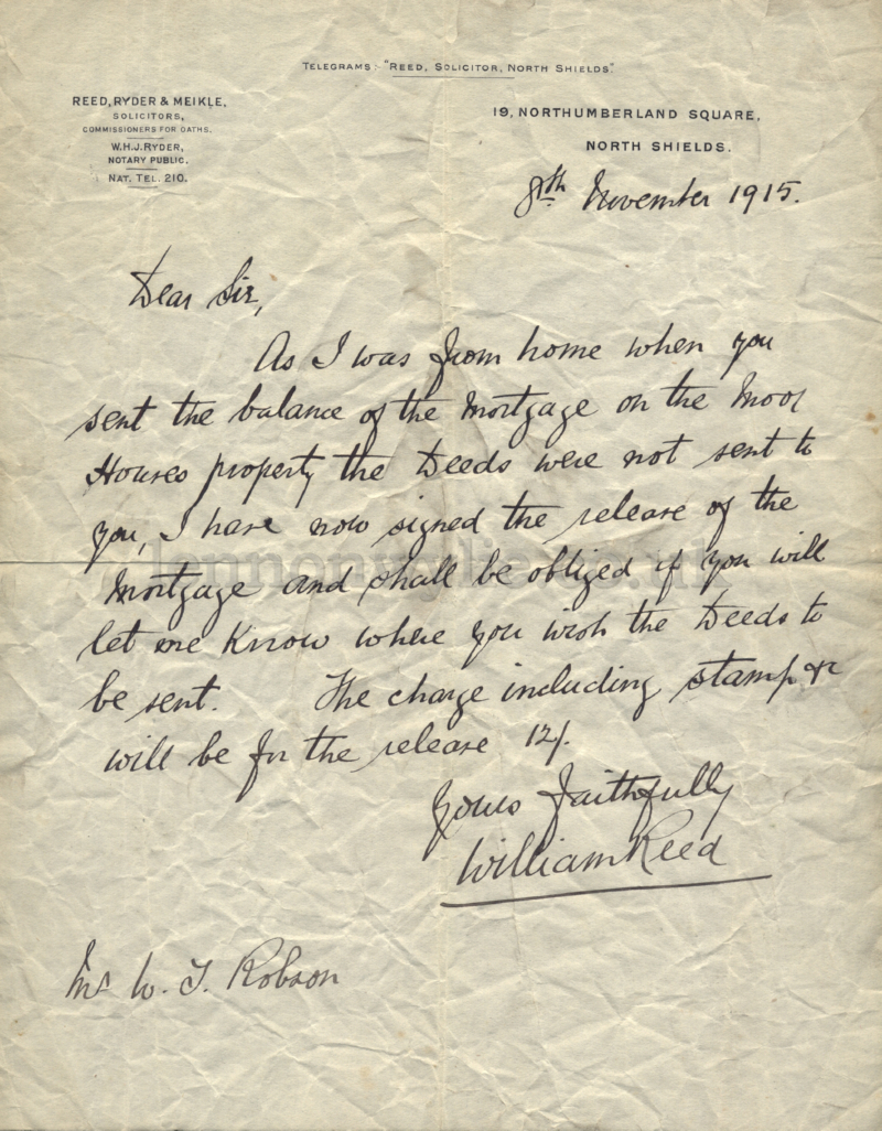 1) 8th November 1915 from Reed, Ryder & Meikle, 19 Northumberland Square,