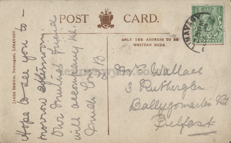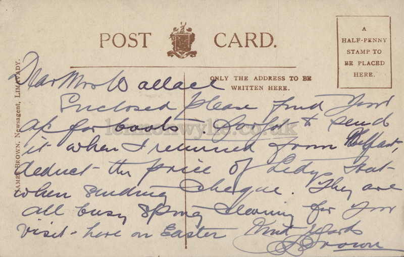 3) 5th March 1912 Postmark Limavady, Co. Londonderry to Mrs. Brown, c/o Mrs.