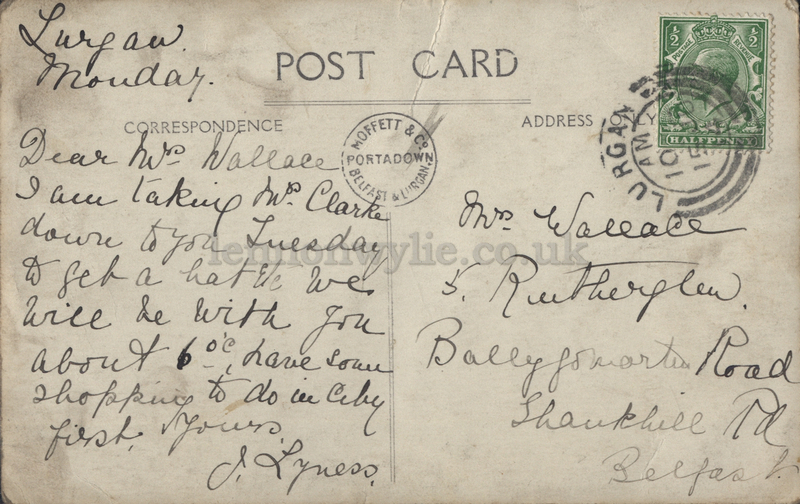 Londonderry to Mrs. Wallace, c/o Mr. Kein, 4 Rutherglen, Ballygomartin Road,