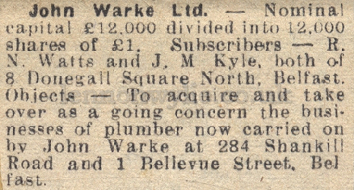 4) John Warke Ltd. - Nominal capital £12,000 divided into 12,000 shares