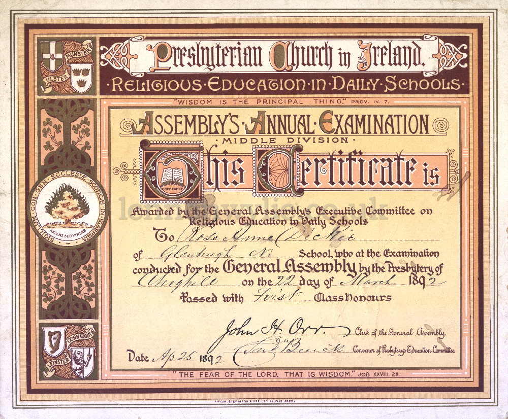 5) Assembly's Annual Examination, Middle Division. This Certificate is