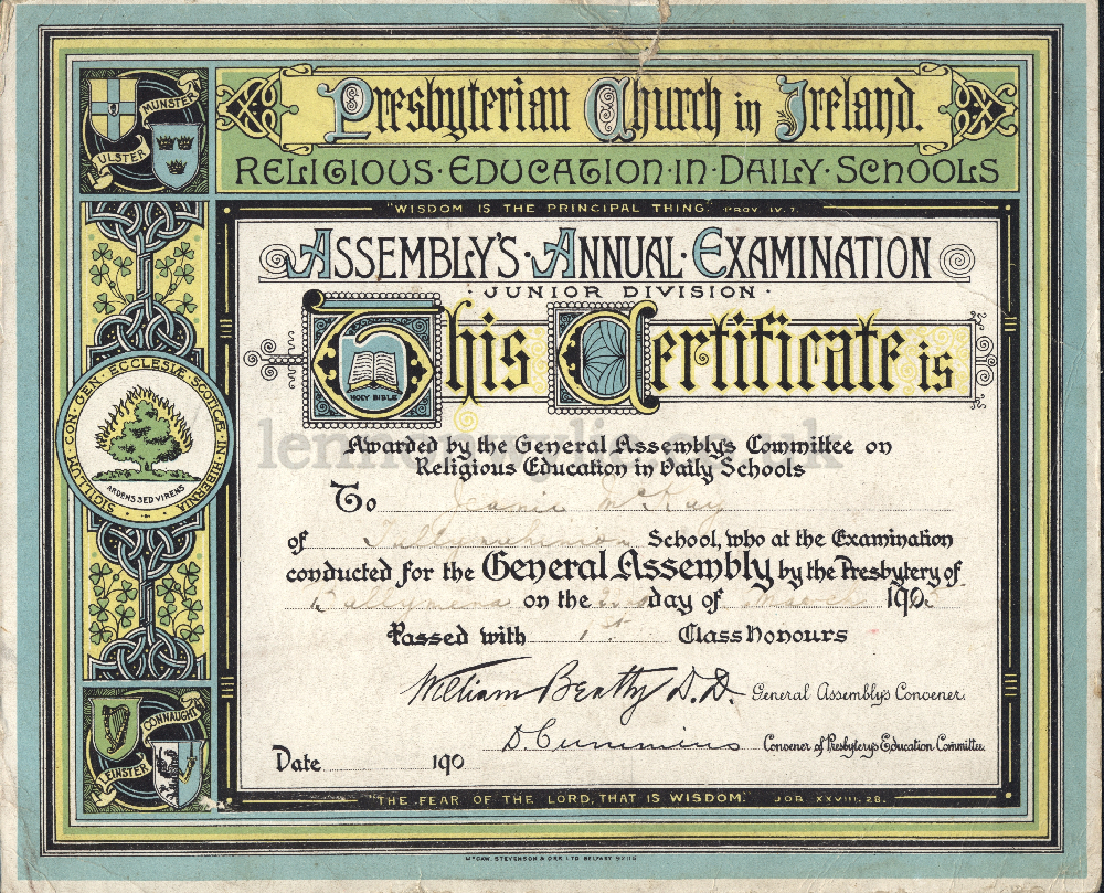 6) Assembly's Annual Examination, Junior Division. This Certificate is