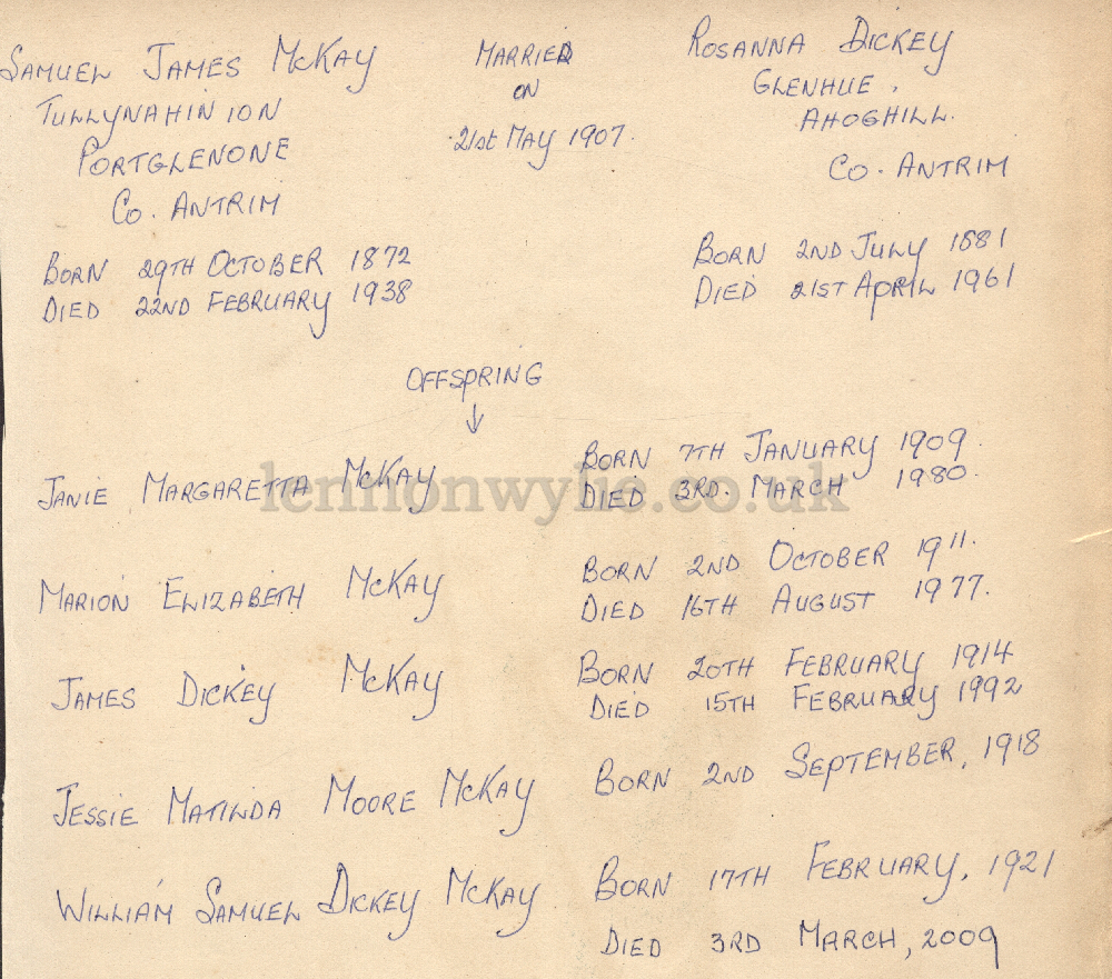 2) Samuel James McKay, Tullynahinion, Portglenone, Co. Antrim (born 29th